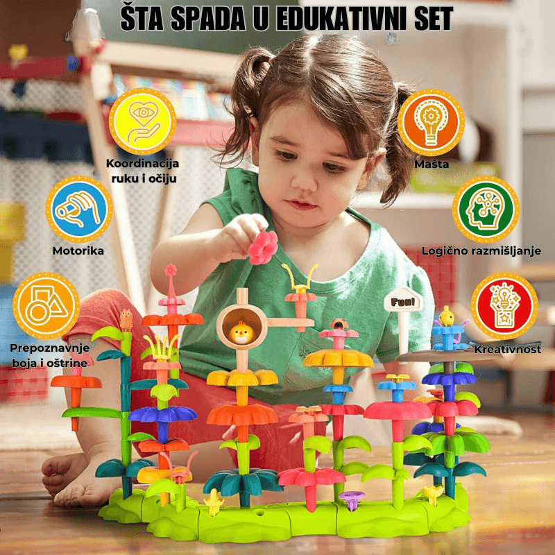 Sastavljanje cvetova zahteva preciznost i koncentraciju, čime deca treniraju finu motoriku i koordinaciju pokreta.