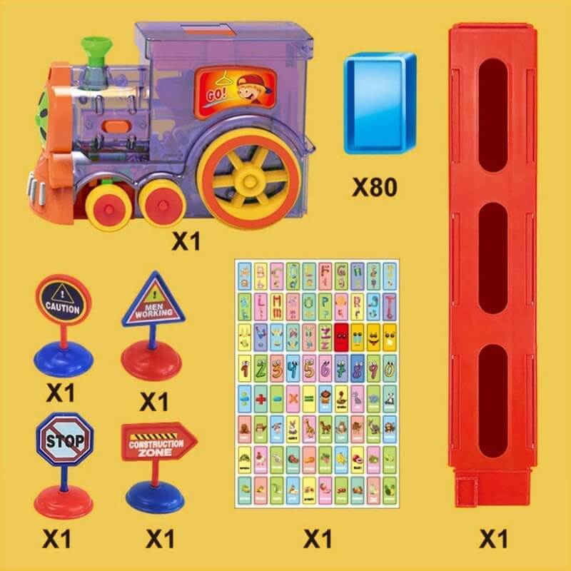 Vozić dolazi u kompletu sa 80 šarenih domina i mini znakovima za potpunu avanturu na „pruzi”.