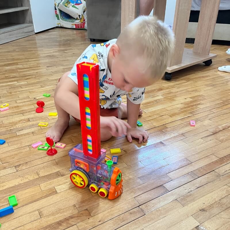 Nakon što voz prođe, za njim ostaje ceo red domina koji svi, a pogotovo deca vole da sruše i dobiju onaj zanimljivi "domino efekat".