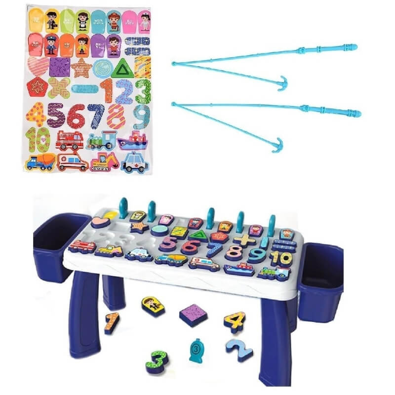 Ovaj edukativni sto dizajniran je da deci pruži idealan alat za učenje osnovnih matematičkih pojmova kao što su brojevi, oblici i jednostavni računi.