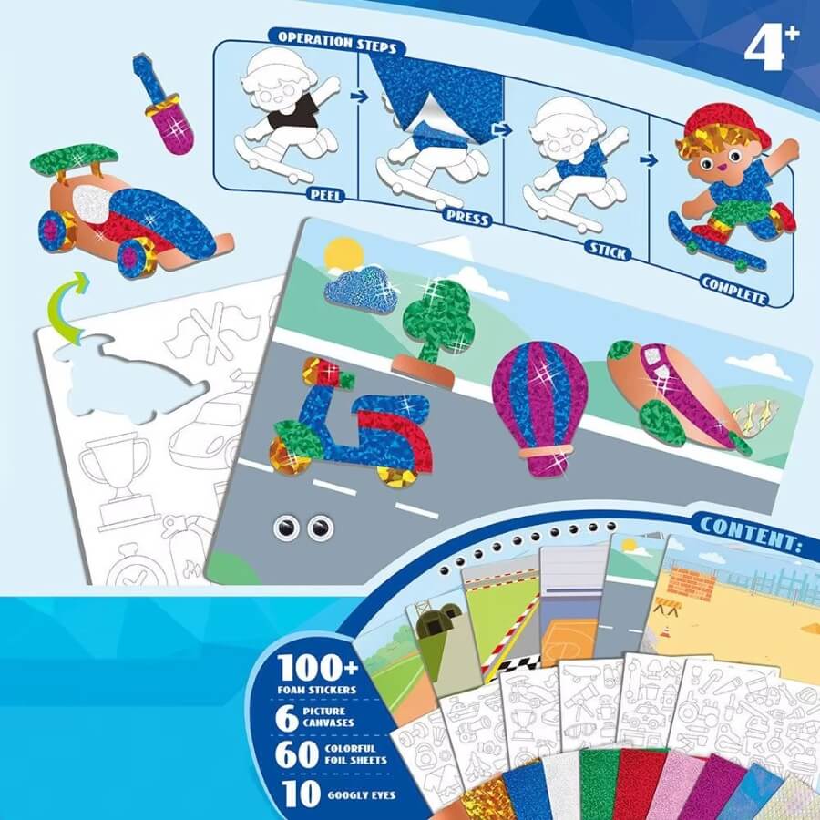 U pakovanju vas čeka više od 100 stikera, 6 kreativnih tematskih podloga, 60 sjajnih folija u raznim bojama i 10 "googly" okica za dodatnu zabavu.